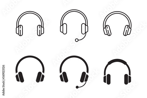 Headphones icon. Black headphones icon collection. Set of music headphones icons. headphone with microphone.  Vector headphone icons