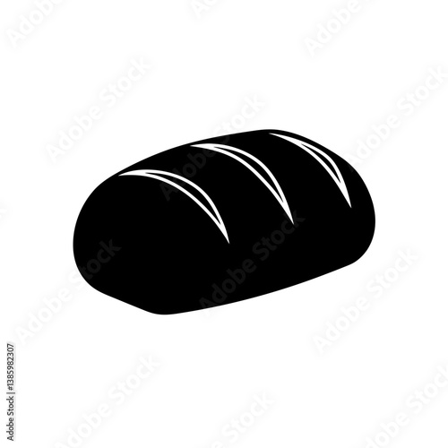 A stylized black silhouette icon of a fresh, long loaf of artisan bread with score marks