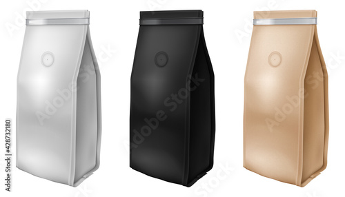 Instant coffee packaging blank bag mockup vector realistic illustration.