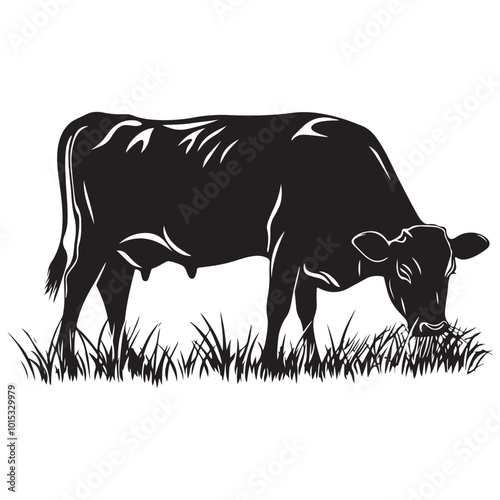 Cow silhouette illustration, cattle livestock graphic, farm animal design, dairy agriculture art, rural countryside vector, grazing mammal icon, beef farming concept