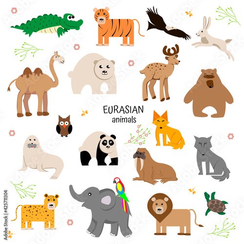 Flat Vector Illustration of Eurasia Map for Education and Design