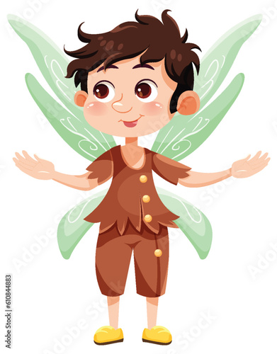 Beautiful wing. Sticker with adorable fairy or butterfly wings for flight and magic. Pair of fantastic wings with cute ornament. Cartoon realistic vector illustration isolated on white background