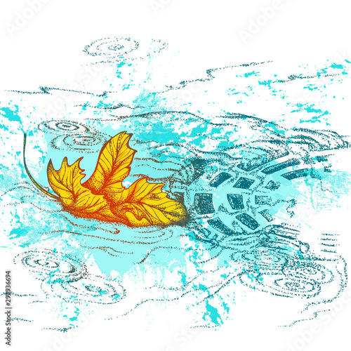 Drain Cover Illustration. Floor Drain Cover Close-Up. Hand-drawn doodle illustration floor drain cover close-up circular grate, holes, screws, water droplets,