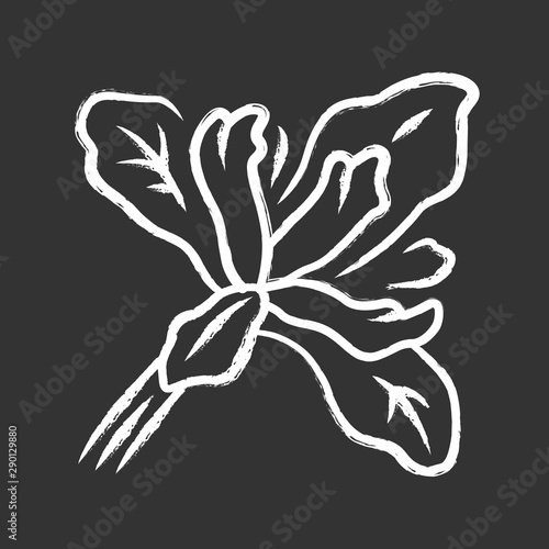 realistic blooming single iris flower with leaves hand drawn black curved simple lines