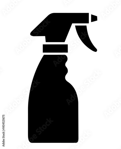 Solid Black Silhouette Set of Cleaning Supplies and Equipment Including Spray Bottle, Sponges, Gloves, Broom, Vacuum Cleaner, and Bucket on Isolated White Background