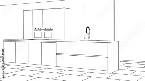 Modern minimalist line art kitchen design featuring sleek appliances and contemporary cabinetry for a chic culinary space