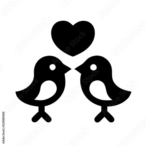 Minimalist black vector icon of two lovebirds sitting together, symbolizing affection, companionship, and romantic connection.