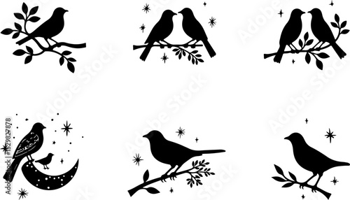 Lovebirds silhouette icons set – simple, romantic, avian symbols for design projects