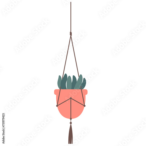 Macrame plant hanger in Scandinavian style interior icon element illustration