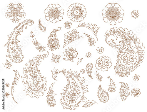 Elegant Indian paisley and mandala vector design elements. Ethnic floral pattern, traditional mehndi art, decorative background.