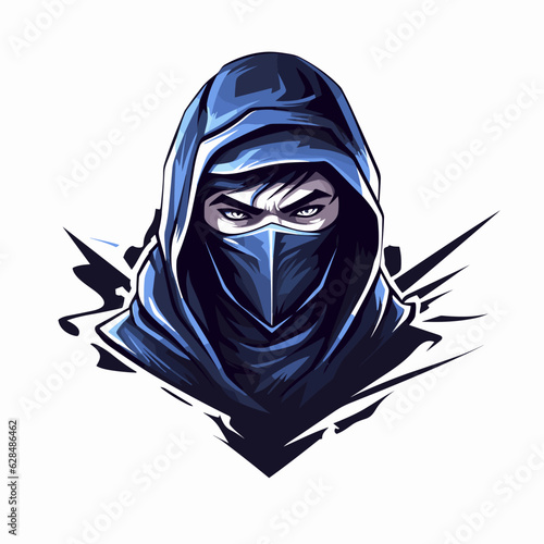 Stylish female ninja mascot logo designed for an electronic sport team featuring bold colors and fierce expression ideal for competitive gaming