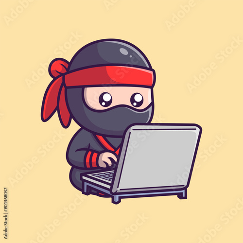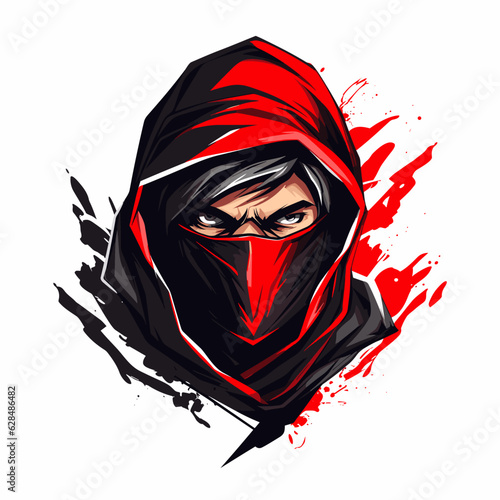 A striking black-and-white illustration of a ninja character, complete with a headband and a determined expression. This design is ideal for merchandise, gaming graphics, or any project related .
