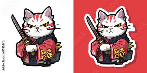 Cartoon ninja chicken with a sword. Vector clip art illustration with simple gradients. All in a single layer.