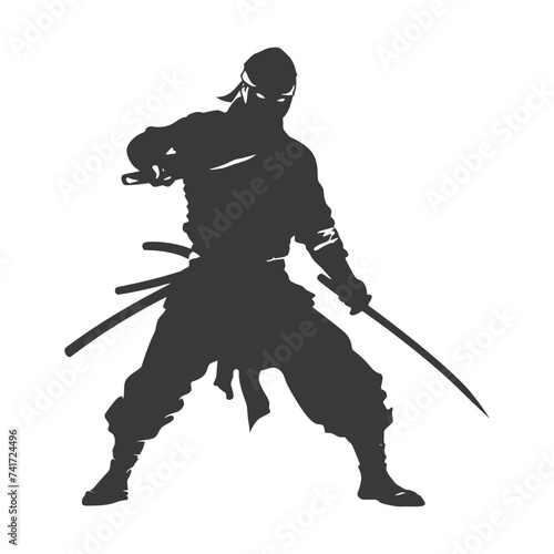 vector illustration silhouette of a ninja character ready for battle on a white background