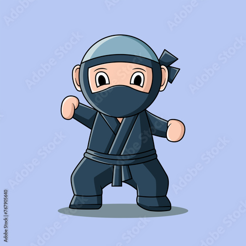 Cartoon ninja characters in various poses with weapons. Martial arts, fighters, warriors, assassins
