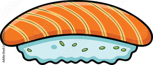 Delicious salmon sushi cartoon illustration with seaweed and rice on a white background