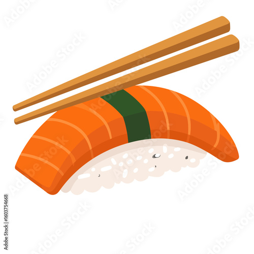 Illustration of Maki Sushi roll, with salmon, nori seaweed, and rice, Japanese cuisine