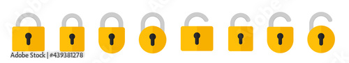 Six yellow padlocks illustration. Open and closed security locks for digital data protection and authorization