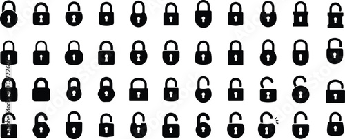 Locks icons set, Padlock symbol, Set of Silhouette of locked and unlocked padlock, Flat design, Vector illustration EPS 10.