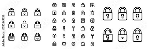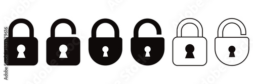 Lock icon collection. Locked and unlocked black line icon set. Flat security symbol
