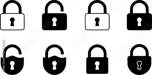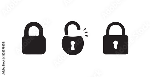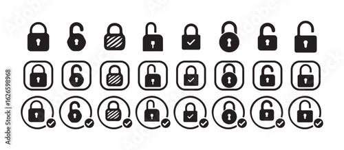 lock icon set. locked and unlocked symbols. modern open and closed padlock. security icon sets. security symbols. lock and security icon for app, ui, website and logo.
