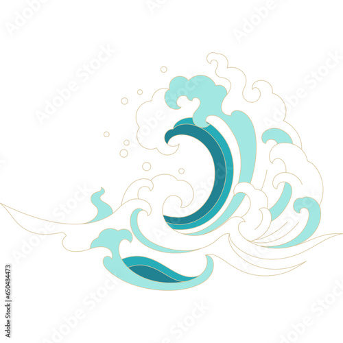 oriental sea wave flat outline design for decorative,printing,tattoo,element,etc
