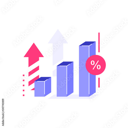 Flat illustration of businessman pushing large dollar coin upward rising bar chart financial growth investment effort earning profit saving pension fund and business success