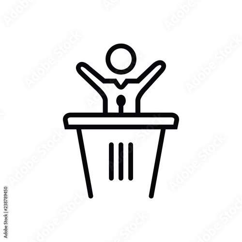 Vector icon of politician speaking at podium with microphones, leadership concept, public speaking outline, professional speaker, transparent background, leadership and communication symbol