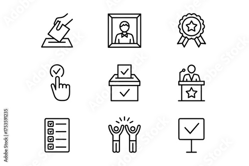 Election line icons.Politics and Election Icon collection containing editable stroke icons.Linear icon collection. Editable stroke. Vector and illustration set.