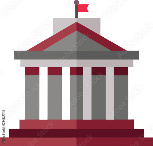 Government Building Flat Vector Illustration with Flag and Columns isolated on a transparent background, Front View