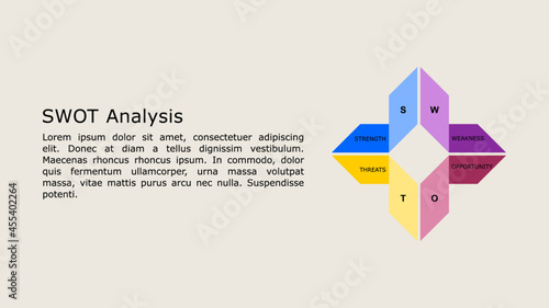 SWOT Analysis infographic template used to help a person or an origination to identify strengths, weaknesses, opportunities and threats regarding the business competition or project planning.