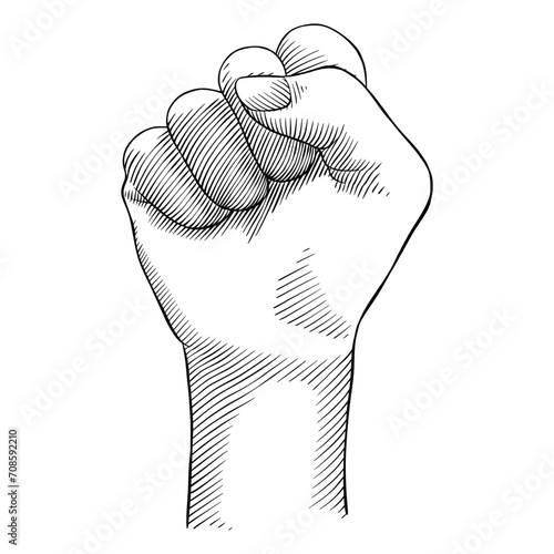 Hand Clenched illustration in engraving style