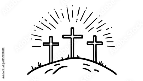 empty tomb and three crosses on hill – minimal easter resurrection vector