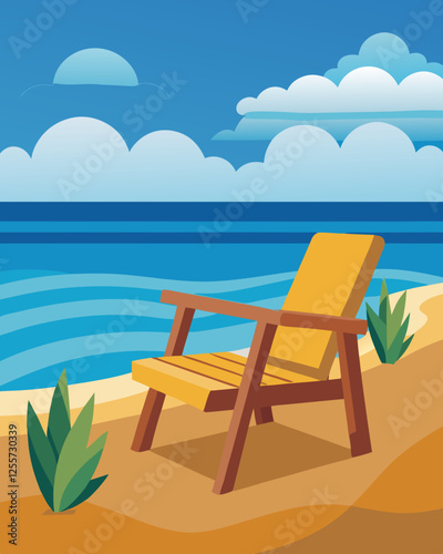 Beach scene with lifeguard tower and palm trees Vector, illustration