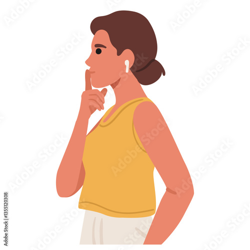 Thoughtful Young Girl with Uncertain Expression Vector Illustration