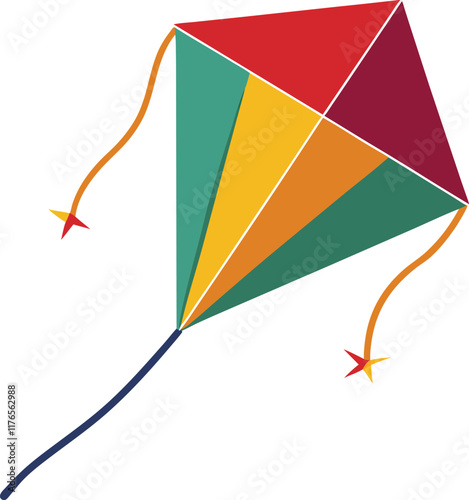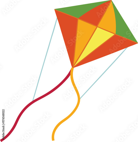Wind air paper kite toy, flying tethered object with wings of diamond shape design. Kids summer entertainment.
