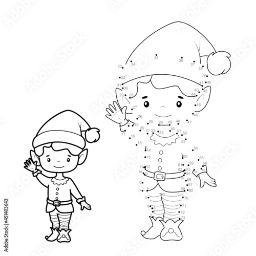 Dot to dot Christmas puzzle for children. Connect dots game. Christmas elf