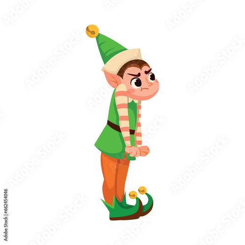 cute cartoon christmas elf sad. vector illustration for mascot logo or sticker