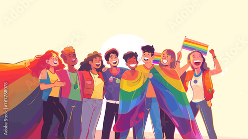 Modern multicultural society and team concept with people in flat style. Group of different people in community. Vector illustration