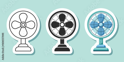 Vector illustration of two electric fans in different styles for cooling and airflow