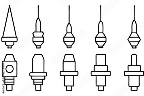 Compressor Diagnostic Icons. Line style icons of compressor diagnostic tools: vibration sensor, temperature probe, amp meter, oil