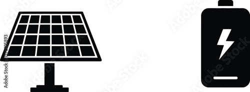 Electrical Energy and Power Supply Line Icon Design Featuring Voltage Symbols, Electric Plugs, Cables, Batteries, Solar Panels, Power Outlets, Circuit Boards, Charging Tools, and Energy Flow Indicator
