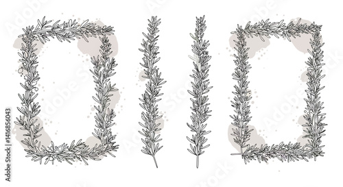 Collection of stylized monochrome floral elements with various flower and leaf shapes and arrangements