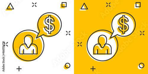 People with money icon in comic style. Investor cartoon vector illustration on white isolated background. Businessman splash effect business concept.