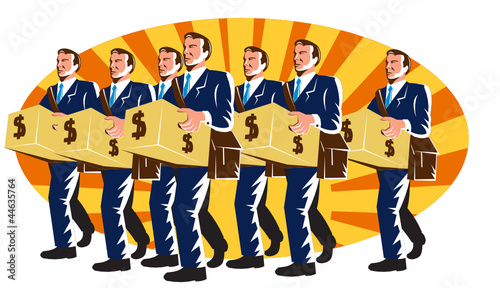 Businessman Banker Worker Carry Money Box Retro