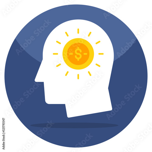 Dollar inside human brain showcasing investor icon
