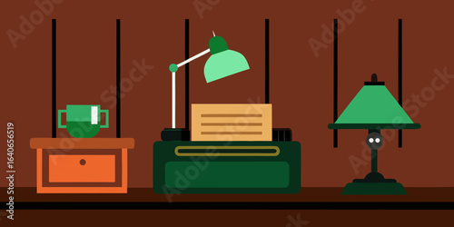 vintage study with typewriter green banker lamp
