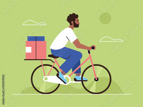 Minimalistic bicycle delivery vector illustration with a person carrying boxes on bike