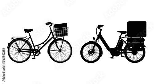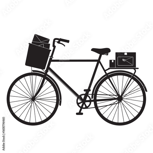 black silhouette of bicycle courier delivering package vector illustration representing fast eco delivery service