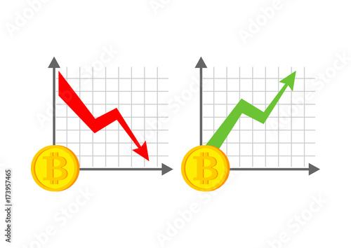 pixel art bitcoin  rate up and  down icon fall sign icon  vector game 8 bit